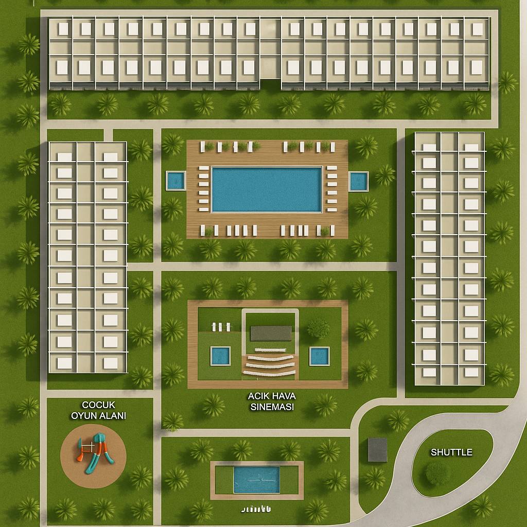• Toplam 154 daire – 2 katlı yatay mimari konsepti